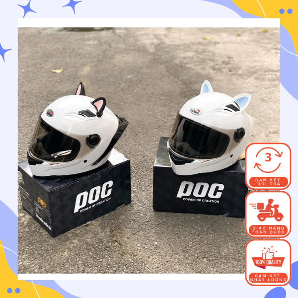🔥 Mũ bảo hiểm Fullface Agu trắng bóng tặng tai mèo, gắn sẵn đuôi gió 2025 đang giảm giá!