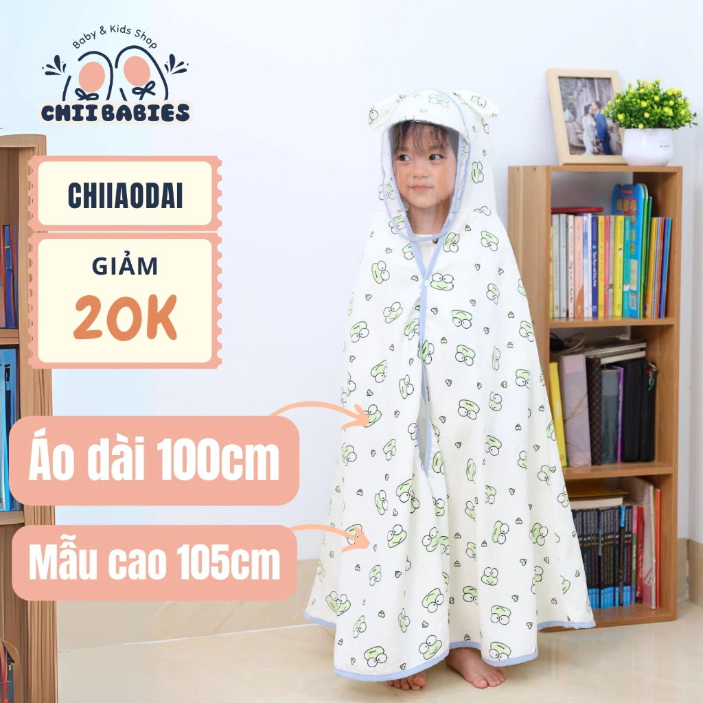 Mua sản phẩm ÁO DÀI 100CM Áo choàng chống nắng cho bé kèm tấm chắn CHII BABIES ở đâu?