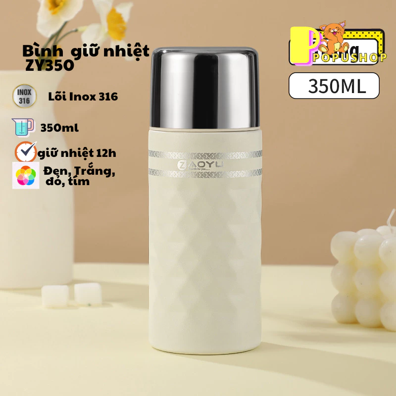 Bình giữ nhiệt 350ml ZY350 có nắp làm cốc uống nước lõi inox 316 giữ nhiệt 12h