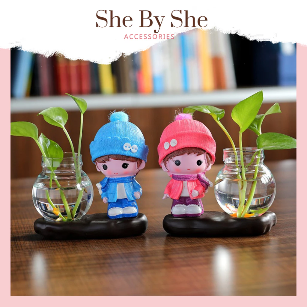 🔥 Bình thủy sinh trồng cây mini kèm tượng đôi nam nữ dễ thương Shebyshe trang trí bàn học, bàn làm việc, quà tặng đang giảm giá!