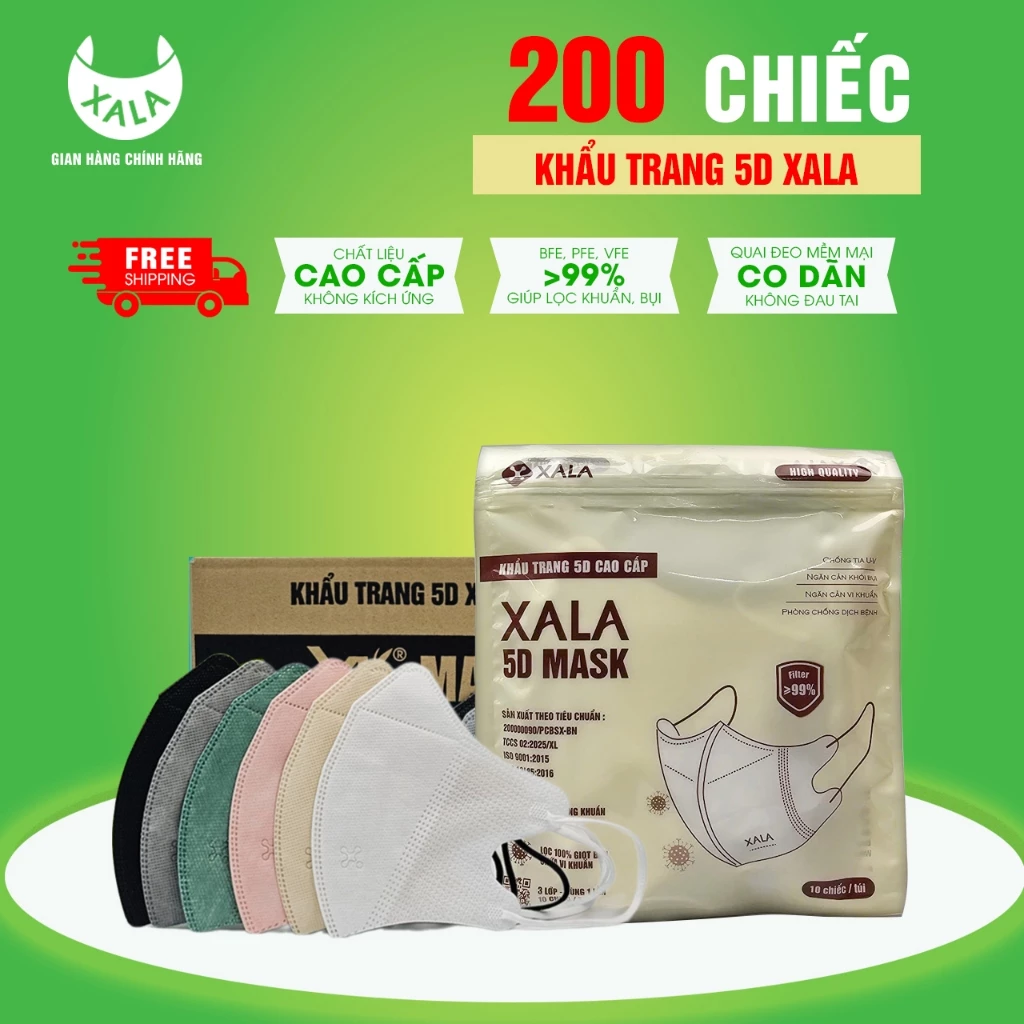 🔥 Khẩu Trang [200 Cái ] 5D XALA Kháng Giọt , Bụi , Tia UV 3 Lớp Hàng Chính Hãng đang giảm giá!