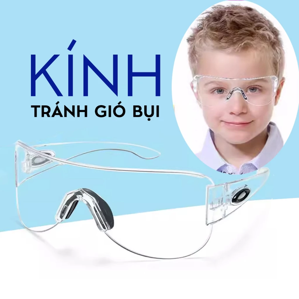 - Kính bảo vệ mắt chống gió bụi: loại kính này thường được thiết kế với khung kính rộng và cao, giúp bảo vệ mắt trẻ khỏi gió bụi và các hạt văng trên đường.