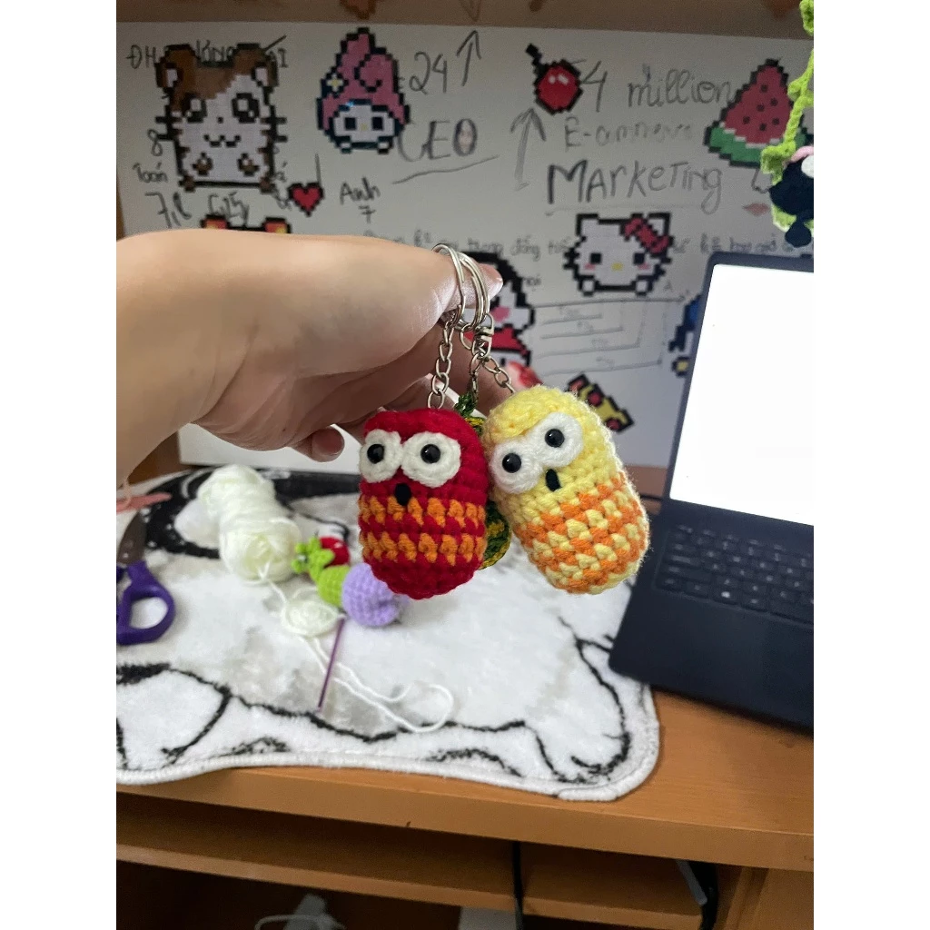- Chọn chất liệu: Chất liệu của móc khóa len cũng rất quan trọng. Len tự nhiên thường mềm mại và bền đẹp hơn len tổng hợp.