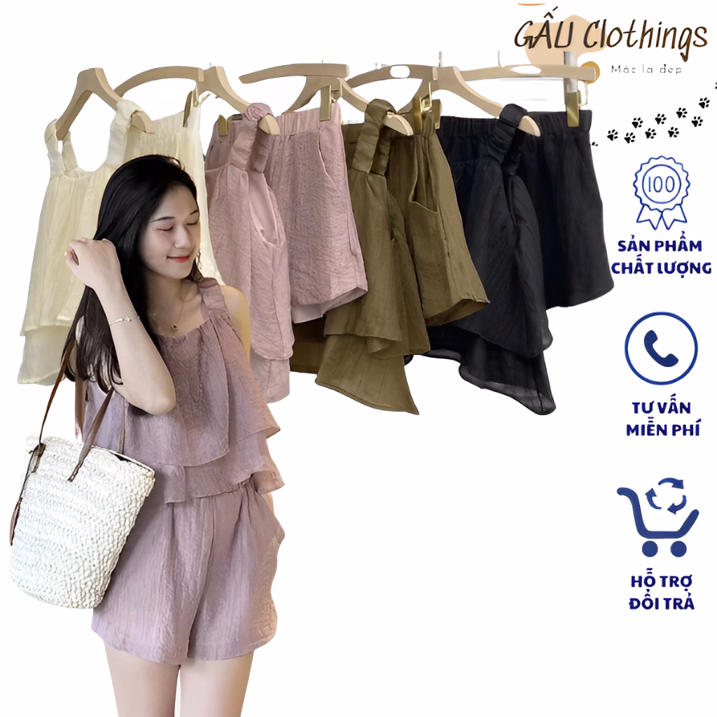 🔥 Set áo 2 dây ren mix quần đũi suông dáng dài tôn dáng hot hit, siêu sang chảnh_Vyan Store đang giảm giá!