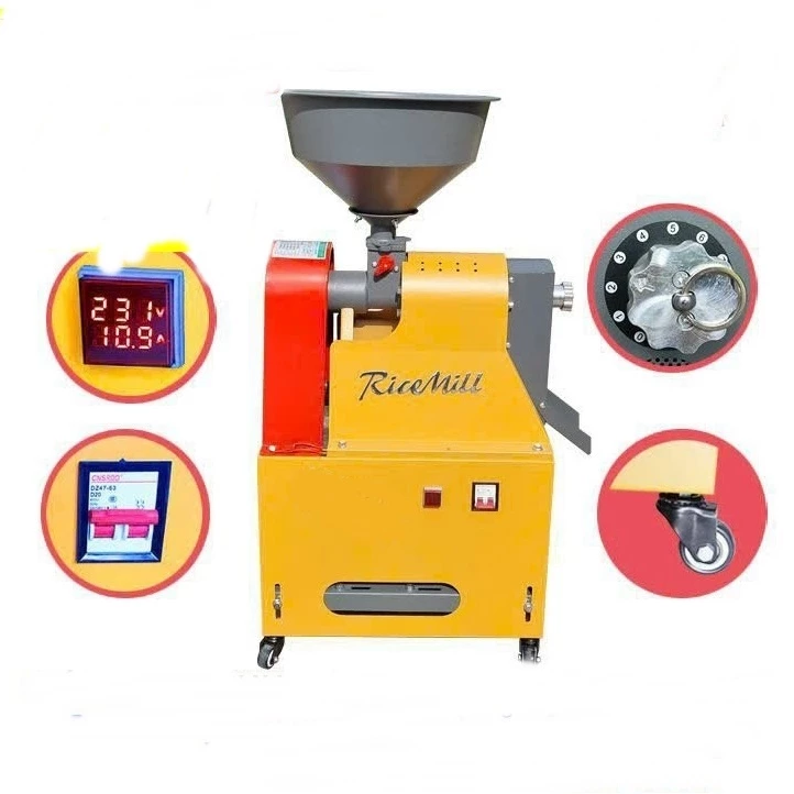 - Máy xát gạo mini liên hoàn: Chỉ mất vài phút để hoàn thành quá trình xát gạo.