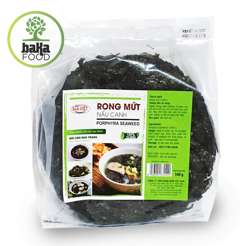 Rong nấu canh loại bánh tròn – rong mứt nấu canh Việt Nam là một sản phẩm rong biển chất lượng cao, được sản xuất tại Việt Nam. Sản phẩm này có màu sắc tươi sáng, không bị phai màu hay bị mốc. Rong biển có độ mềm vừa phải, không quá cứng hay quá mềm.