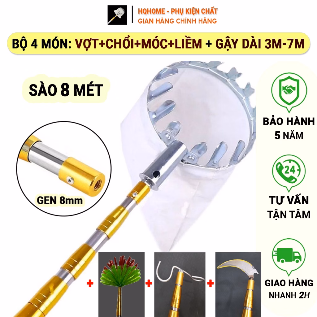 🔥 Bộ 5 Món Gậy Dài 3M-9M Hái Quả,Quét Trần Nhà,Phơi Quần Áo, Móc Lồng Chim, Liềm Cắt Cành (Gậy+Đầu Vợt+Móc chim+Liềm+Chổi) đang giảm giá!